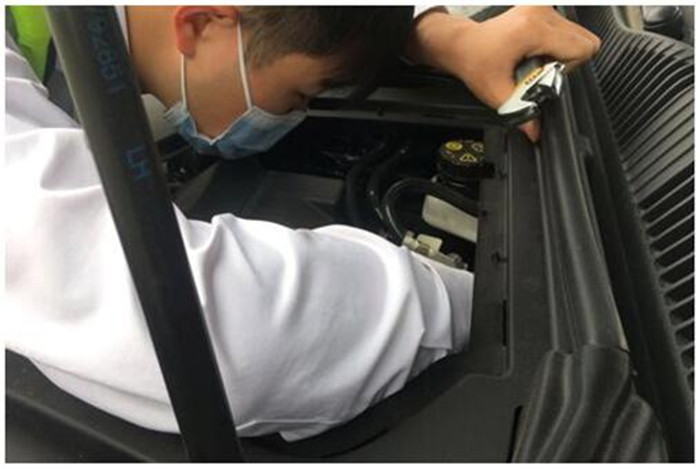 “真是沒想到,交投四環(huán)線高速公路的收費員還會修車啊!由衷地感謝你們!”, 11月10日中午,一輛小轎車緩緩駛?cè)胄旒冶な召M站出口24號道,在簡單了解情況后,當(dāng)班收費員立刻向班長尹祚銘匯報情況,詢問后得知司機剛從沌口收費站上高速,結(jié)果沒走幾公里車輛就報故障了,并且引擎蓋內(nèi)嗡嗡作響,不得已就近下站尋找修車點。