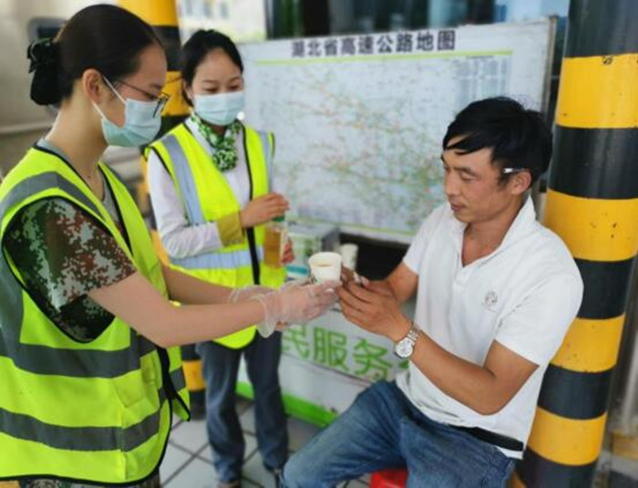 在等待車輛維修期間,細心的收費員發(fā)現(xiàn)師傅當時狀態(tài)不佳,并伴有臉色泛白、頻繁出汗,一番詢問過后得知車輛在高速上行駛時就出現(xiàn)故障,不敢開啟空調制冷,當班班長意識到司機可能出現(xiàn)中暑癥狀,立即從便民醫(yī)藥箱中拿出藿香正氣水助其服用,事后迅速取來冰水給司機解渴并采取濕毛巾敷臉的方法,全力緩解中暑癥狀。半小時后,癥狀已初步緩解,此時救援車輛趕來,當班班長又馬不停蹄的趕去故障車旁配合救援人員將車輛脫離收費現(xiàn)場。臨走之前,司機師傅再次表達了感激之情并對收費站工作人員的服務連連稱贊。