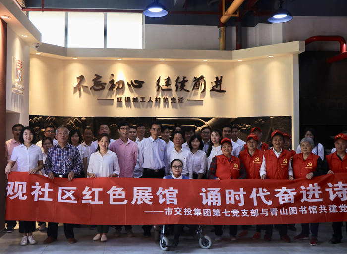 為深入學習貫徹習近平總書記視察湖北重要講話精神,加強基層黨建工作縱深發(fā)展,5月11日,武漢交投集團第七黨支部聯(lián)合青山圖書館前往青山區(qū)青和居社區(qū)“青山綠水紅鋼城新時代展館”,開展了以 “觀社區(qū)紅色展館 誦時代奮進詩篇”為主題的共建黨建活動,接受了一次生動的紅色教育。集團第七黨支部書記沈海濤、青山區(qū)圖書館館長吳紅勤及第七黨支部全體黨員干部職工、青和居社區(qū)代表共計40余人參加了本次活動。