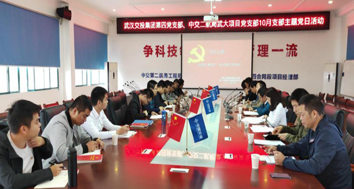 為提高黨員干部的科學(xué)管理水平,促進黨員干部勇于擔當、積極作為、拼搏趕超、不斷提升自身的管理水平和綜合素質(zhì),10月16日上午武漢交投集團第四黨支部聯(lián)合中交二航局武大高速公路4標段黨支部,在項目部會議室開展了以“創(chuàng)建黨員‘責(zé)任區(qū)’、助力武漢‘軍運會’”為主題的黨日活動。雙方黨員、發(fā)展對象及群眾代表積極參加黨日活動。