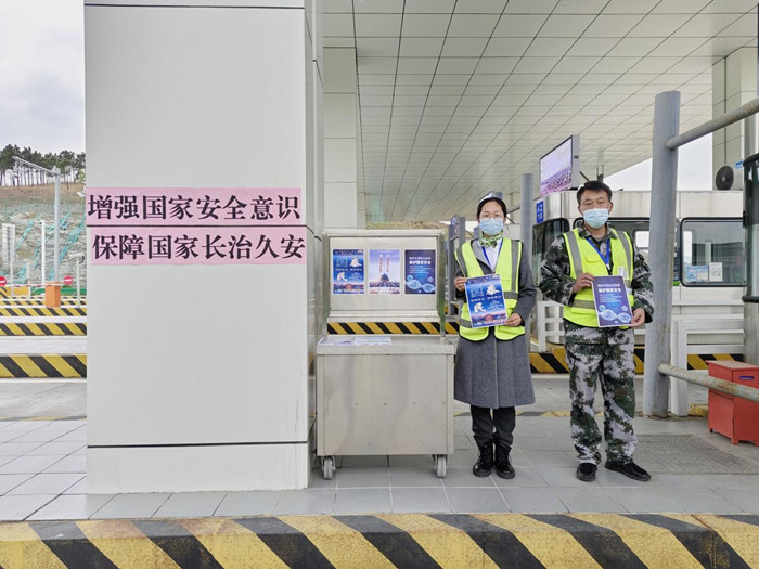 集團(tuán)所屬高速公路運(yùn)營黨支部組織全體黨員專題學(xué)習(xí)了習(xí)近平總書記關(guān)于總體國家安全觀的重要論述,學(xué)習(xí)了安全生產(chǎn)方面的專業(yè)知識。集團(tuán)所轄各高速公路收費(fèi)站所通過高速公路LED情報(bào)板循環(huán)播放國家安全教育知識宣傳標(biāo)語,在收費(fèi)廣場設(shè)立“安全普法知識宣傳臺”,在站所營區(qū)布設(shè)宣傳展板,向收費(fèi)現(xiàn)場過往司乘發(fā)放宣傳資料千余份,累計(jì)解疑上千條等形式,全面營造了維護(hù)國家安全和社會安全的良好氛圍。