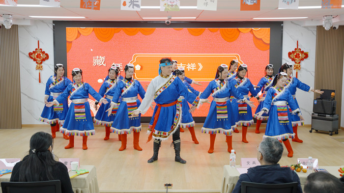 聯(lián)歡會在康養(yǎng)俏夕陽舞蹈團的優(yōu)美舞姿中拉開帷幕,康養(yǎng)中心入住長者們個個能歌善舞,演繹的《夢中的村落》贏得陣陣掌聲。來自綜交院的一首男聲獨唱《如愿》讓現(xiàn)場觀眾感受到幸福生活的美好。來自運營公司的表演者演繹的《相親相愛》《送!贰恫薯嵥贰断﹃枱o限好》《黨旗飄揚的方向》節(jié)目,為長者們帶來青春的活力。所有演職人員熱情投入,將音樂與舞蹈融為一體,現(xiàn)場精彩絕倫,掌聲不斷。節(jié)目間歇穿插的互動小游戲?qū)夥胀葡蚋叱,主會場與二三分會場視頻連線,長者們熱情互動,引發(fā)一陣陣歡呼聲浪。伴隨著全場雄壯的合唱《歌唱祖國》,聯(lián)歡會落下帷幕,現(xiàn)場觀眾激情澎湃,共同祝福祖國繁榮昌盛。整場演出豐富多彩,高潮迭起,為觀眾帶來了一場全新的視聽盛宴。