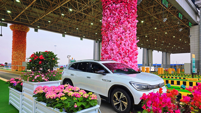 五彩花卉扮靚收費(fèi)站 向來往司乘發(fā)出春天的邀請(qǐng)
