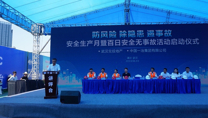 6月3日上午,在全國(guó)第18個(gè)“安全生產(chǎn)月”到來(lái)之際,“百日安全無(wú)事故”活動(dòng)武漢市建設(shè)工程安全監(jiān)督站副站長(zhǎng)楊劼、交投集團(tuán)副總經(jīng)理文兵、和縱盛地產(chǎn)公司總經(jīng)理尹水章、中國(guó)一冶集團(tuán)有限公司副總經(jīng)理田國(guó)清出席活動(dòng),各參建單位相關(guān)負(fù)責(zé)人及產(chǎn)業(yè)工人代表共200余人參加了此次活動(dòng)。