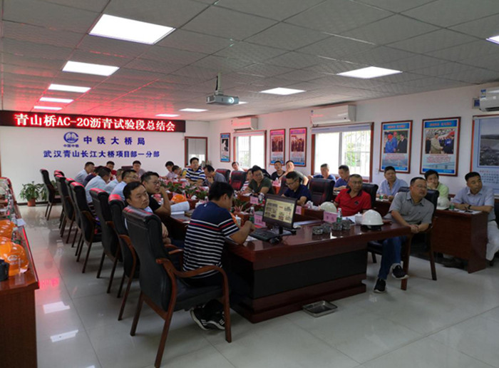 6月19日,青山橋公司組織設(shè)計(jì)、咨詢、監(jiān)理、施工及專業(yè)分包單位召開了瀝青路面AC-20試驗(yàn)段施工總結(jié)會。會議特邀省公路學(xué)會白山云理事長、中南安全環(huán)境技術(shù)科學(xué)研究院有限公司張厚記院長兩位知名專家為項(xiàng)目瀝青路面施工情況進(jìn)行把關(guān)。
