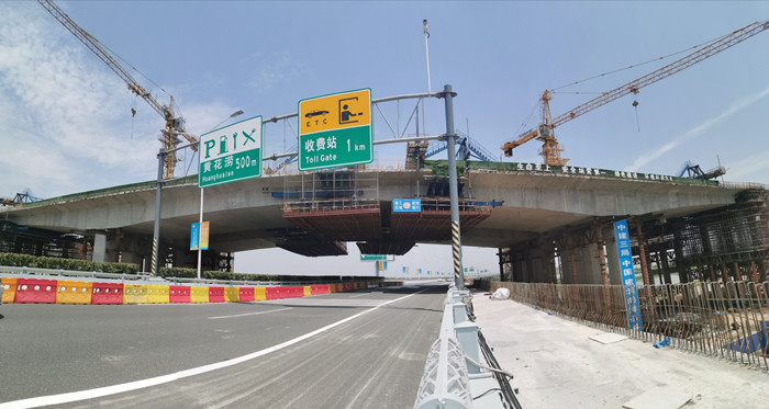 作為武漢市的門戶道路,機(jī)場(chǎng)二通道是武漢機(jī)場(chǎng)通往市區(qū)主要出行通道,車流量大、社會(huì)關(guān)注度高、安保任務(wù)重,施工期間歷經(jīng)十余次國(guó)家、省、市等各級(jí)領(lǐng)導(dǎo)出行安保任務(wù)。為確保機(jī)場(chǎng)二通道車流通暢和道路上方施工安全,北四環(huán)公司主動(dòng)作為,在各級(jí)部門的支持下,堅(jiān)決推行“四個(gè)高度”安全管理理念,即安全措施高度保障、安全氛圍高度營(yíng)造、安全費(fèi)用高度投入、安全管理高度有效,有力踐行了“不讓一粒石子落入機(jī)場(chǎng)二通道內(nèi)”的承諾。與此同時(shí),通過科學(xué)組織、統(tǒng)籌安排,北四環(huán)公司在施工過程中進(jìn)一步優(yōu)化混凝土配合比及施工方案,嚴(yán)控施工過程,對(duì)每道工序進(jìn)行嚴(yán)格把關(guān),最終實(shí)現(xiàn)了懸澆梁精準(zhǔn)合龍,成橋線形平順、箱體內(nèi)實(shí)外美的質(zhì)量目標(biāo)。