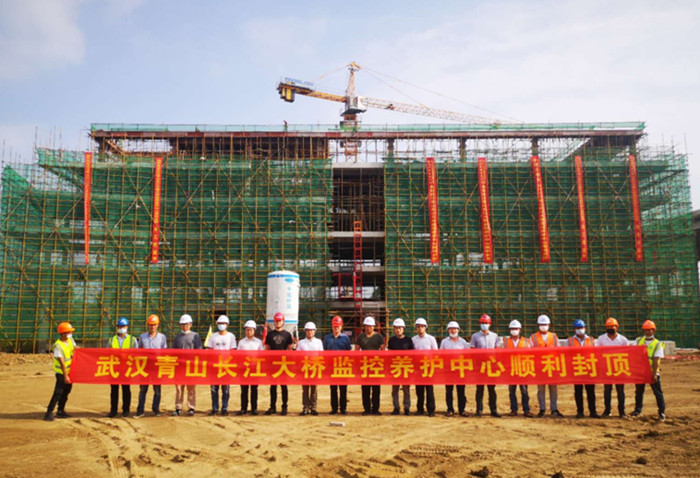 青山橋監(jiān)控養(yǎng)護中心是青山橋安全運營的中樞,擔(dān)負著橋梁健康監(jiān)測、反恐監(jiān)控、運營交通安全和橋梁養(yǎng)護管理等職能。中心總建筑面積為6016.16 平方,為五層鋼筋混凝土框架結(jié)構(gòu)。自復(fù)工以來,青山橋公司積極響應(yīng)“堅持兩手抓兩手硬,堅決奪取疫情防控和經(jīng)濟社會發(fā)展雙勝利”的號召,按照集團“目標(biāo)不變,任務(wù)不減,確保完成2020年度計劃”的要求,克服了用工、材料采購和持續(xù)降雨等困難,強力推進剩余工程。房建工程自4月1日正式展開后,各參建單位和人員抓進度,保安全,控質(zhì)量,歷時90天,結(jié)構(gòu)順利封頂,把因疫情影響的工期搶了回來,為青山橋項目按期運營打下了堅實的基礎(chǔ)。