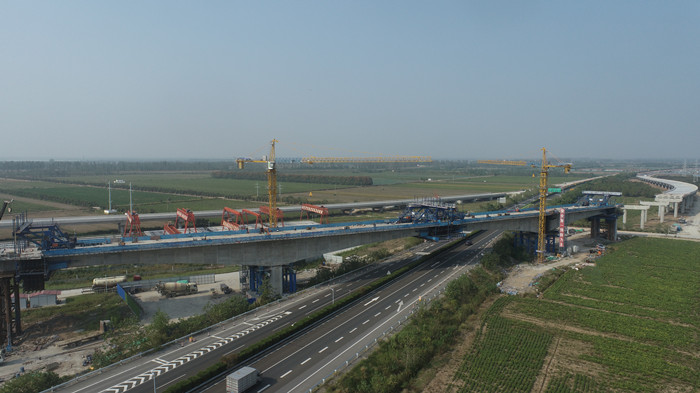 水洪互通樞紐左線主橋跨武監(jiān)高速懸灌梁中跨順利合龍