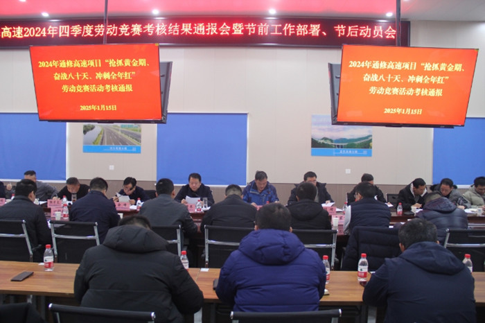 2025年1月15日,武漢交投通修高速建設(shè)管理有限公司組織召開四季度勞動(dòng)競賽考核結(jié)果通報(bào)會(huì)暨節(jié)前工作部署、節(jié)后動(dòng)員會(huì)。項(xiàng)目公司領(lǐng)導(dǎo)班子及各部門負(fù)責(zé)人,中心試驗(yàn)室主要負(fù)責(zé)人,設(shè)計(jì)代表,駐地辦正(副)駐地監(jiān)理工程師,各標(biāo)段后方公司領(lǐng)導(dǎo)、項(xiàng)目經(jīng)理等參會(huì)。