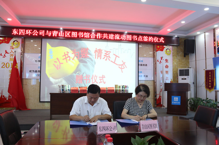 為進(jìn)一步滿足產(chǎn)業(yè)工人的精神文化需求,豐富產(chǎn)業(yè)工人業(yè)余文化生活,提高產(chǎn)業(yè)工人技術(shù)水平和文化素養(yǎng),推進(jìn)“書(shū)香東四環(huán)”文化建設(shè),8月7日上午,武漢交投集團(tuán)東四環(huán)公司與青山區(qū)圖書(shū)館在東四環(huán)一標(biāo)會(huì)議室舉行了共建流動(dòng)服務(wù)圖書(shū)點(diǎn)簽約儀式,青山區(qū)圖書(shū)館黨支部書(shū)記鄧?guó)P芝、青山區(qū)圖書(shū)館副館長(zhǎng)吳紅勤、交投集團(tuán)安全部部長(zhǎng)、東四環(huán)公司總監(jiān)汪幫平、交投集團(tuán)第七黨支部書(shū)記沈海濤出席了簽約儀式。