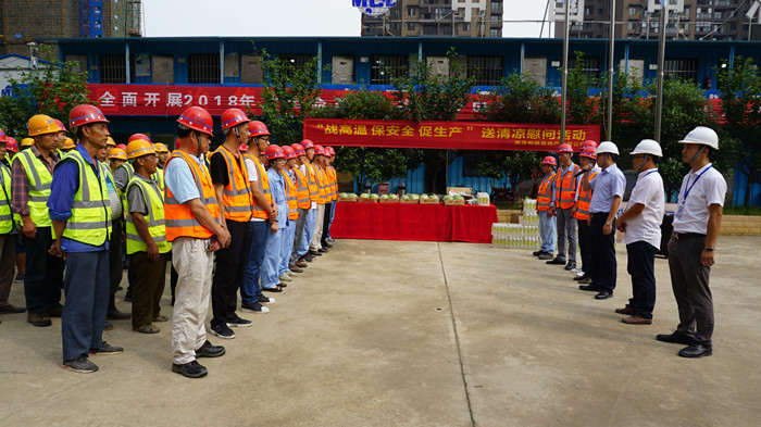 6月29日,和縱盛地產(chǎn)公司總經(jīng)理尹水章、交投集團(tuán)第三黨支部書記胡娟和地產(chǎn)公司副總經(jīng)理周勝分別率隊(duì)前往青山濱江商務(wù)區(qū)44#地塊、東西湖融匯大廈項(xiàng)目和青山濱江商務(wù)區(qū)39#地塊等三個(gè)在建項(xiàng)目,為在高溫下奮戰(zhàn)的一線產(chǎn)業(yè)工人送去殷殷關(guān)懷;