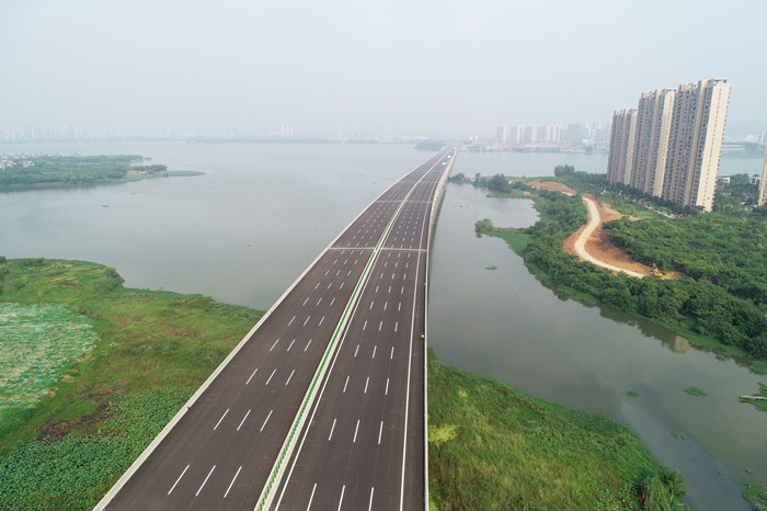 由武漢交投集團(tuán)投資建設(shè)的四環(huán)線(xiàn)龔家鋪至中洲段(簡(jiǎn)稱(chēng)“南四環(huán)線(xiàn)”)主線(xiàn)已于近日建成貫通。南四環(huán)線(xiàn)為武漢市四環(huán)線(xiàn)高速公路的南段部分,起于江夏區(qū)龔家鋪,接沌口長(zhǎng)江大橋段,設(shè)龔家鋪樞紐互通銜接青鄭高速公路和G107國(guó)道,沿星光大道南側(cè)向東,止點(diǎn)設(shè)藏龍島互通樞紐與繞城高速(滬渝高速)相接,全長(zhǎng)17.185公里,采用雙向八車(chē)道高速公路標(biāo)準(zhǔn)建設(shè),設(shè)計(jì)速度100公里/小時(shí)。項(xiàng)目于2015年正式開(kāi)工建設(shè),建設(shè)內(nèi)容包括主線(xiàn)橋梁6座,橋梁長(zhǎng)度占路線(xiàn)長(zhǎng)度的90.8%;互通立交三處,分別是龔家鋪互通、中洲互通、藏龍島互通,以及1處停車(chē)服務(wù)區(qū)和2處收費(fèi)管理站。