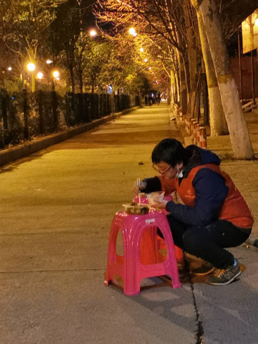 “剛開始時(shí)有些居民還不理解,不愿意跟我們交流溝通。慢慢地大家也都理解了,現(xiàn)在基本都非常配合我們的工作。”除了執(zhí)勤守崗,突擊隊(duì)員們還擔(dān)當(dāng)起了政策講解員,甚至有些上了年紀(jì)的困難居民出不了門,買不著米面油等都直接來找路邊的“紅袖章”,突擊隊(duì)員們還兼任起了“后勤員”“聯(lián)絡(luò)員”,全方位保障居民群眾的日常生活,而突擊隊(duì)員們的一日三餐則是“蹲”在路邊匆匆解決。
