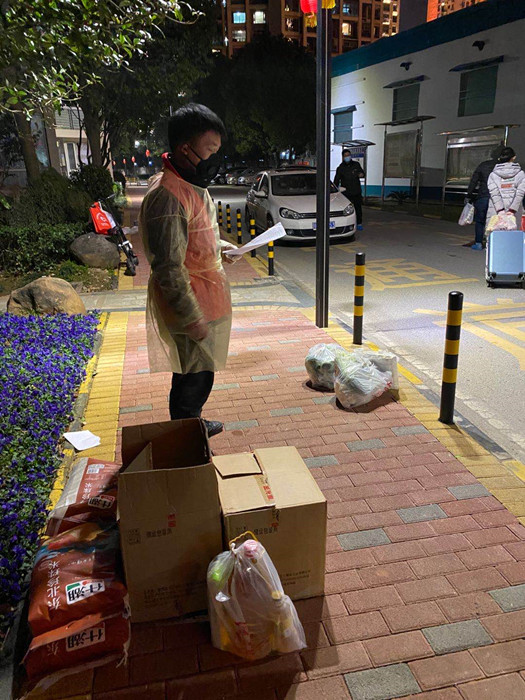 夜已深,陳超仍堅(jiān)守崗位,為居民送去生活物資