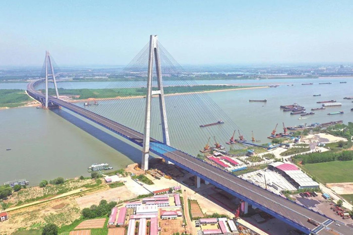 青山長(zhǎng)江大橋預(yù)計(jì)今年年底通車。通車后,這座大橋?qū)⒊蔀檫B接武漢青山和黃陂的一條新通道,進(jìn)一步優(yōu)化武漢“環(huán)線+射線”路網(wǎng)結(jié)構(gòu),對(duì)緩解武漢過(guò)江交通壓力、增強(qiáng)武漢國(guó)家綜合交通樞紐地位、打造中部地區(qū)現(xiàn)代物流基地具有重要意義。