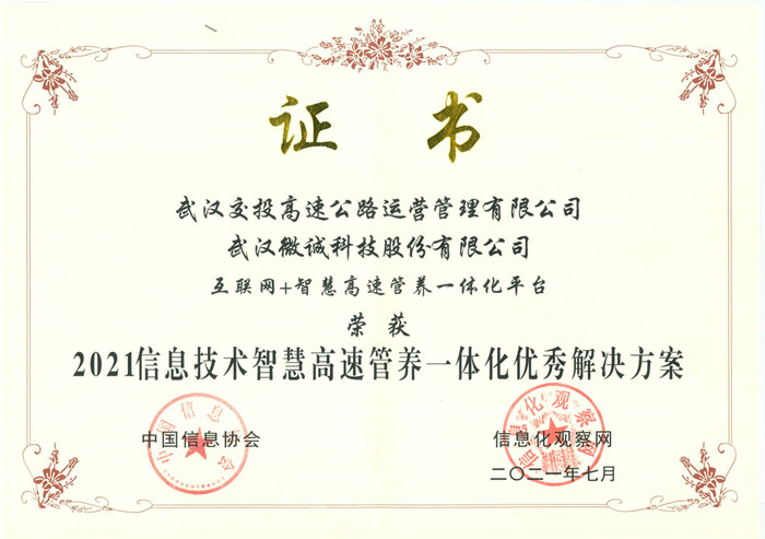 近日,由中國信息協(xié)會主辦“2021第四屆中國信息技術(shù)主管大會”在北京圓滿召開。武漢交投集團高速公路運營公司“互聯(lián)網(wǎng)+智慧高速管養(yǎng)一體化平臺”獲得大會授予的“2021信息技術(shù)智慧高速管養(yǎng)一體化優(yōu)秀解決方案”榮譽稱號。這也是武漢交投集團高速公路智慧管養(yǎng)一體化平臺代表湖北高速公路系統(tǒng)斬獲的全國性大獎。
