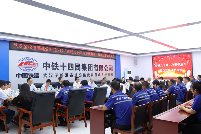 七月驕陽紅似火,大地草木正蔥蘢。7月9日,為號(hào)召全體參建者凝心聚力、攻堅(jiān)克難、團(tuán)結(jié)協(xié)作,全力以赴完成各項(xiàng)施工任務(wù),由武漢交投集團(tuán)主辦、武松高速項(xiàng)目部承辦的“奮戰(zhàn)九個(gè)月,攻堅(jiān)保通車”勞動(dòng)競(jìng)賽活動(dòng)正式啟動(dòng)。武漢交投集團(tuán)副總經(jīng)理陳青標(biāo)、中鐵十四局二公司總經(jīng)理孔德芒出席會(huì)議。