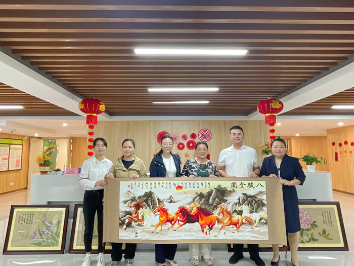 入住老者家屬向康養(yǎng)公司贈送刺繡作品《八駿圖》,表達感謝