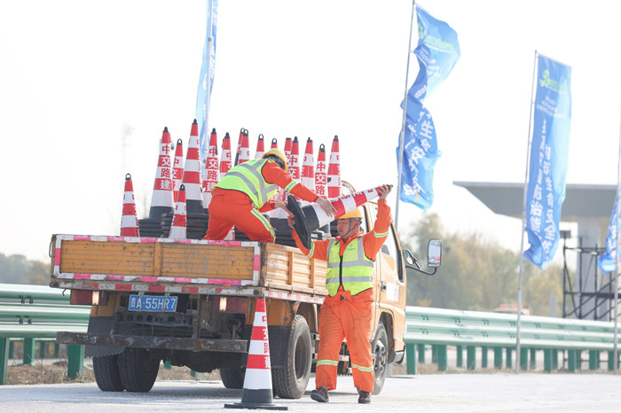 演練采用“現(xiàn)場同步回傳”形式,模擬設(shè)計高速路段預(yù)防性撒布、車輛交通事故快速處理、路面結(jié)冰積雪處置等場景。武漢交投集團(tuán)高速公路運(yùn)營管理有限公司撒布機(jī)、推雪鏟、滾雪刷一體車及破冰機(jī)等現(xiàn)代裝備開展鏟冰除雪作業(yè);交警、路政現(xiàn)場聯(lián)合管控、事故快處,疏散受困人員。本次演練全面展現(xiàn)了事件發(fā)生、信息報告、啟動響應(yīng)、應(yīng)急處置與后期處置等公路領(lǐng)域低溫雨雪冰凍災(zāi)害處置的所有環(huán)節(jié),不僅檢驗(yàn)了應(yīng)急預(yù)案的可行性和有效性,錘煉了應(yīng)急隊伍的反應(yīng)速度和協(xié)同作戰(zhàn)能力,也進(jìn)一步提升了“湖北交通人”在防滑除雪保暢領(lǐng)域的綜合應(yīng)對水平。