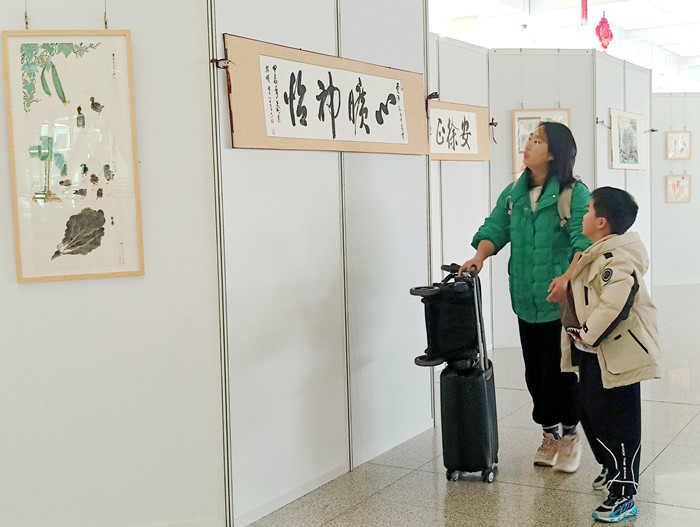 本次展覽位于天河機(jī)場(chǎng)交通中心7號(hào)連廊處。天河機(jī)場(chǎng)交通中心是目前國內(nèi)交通換乘一體化程度最高的樞紐之一,實(shí)現(xiàn)了航空、城鐵、地鐵、公路長途、公交、出租車、網(wǎng)約車、社會(huì)車輛等8種交通方式無縫銜接。在全力做好春運(yùn)保障工作,溫情守護(hù)旅客歸家路的重要節(jié)點(diǎn),這一城市窗口變身成為開放式的愛國主義教育前沿“大課堂”,出自柴泊湖武漢康養(yǎng)中心入住長者之手的56幅展品,涵蓋書法、繪畫、手工文創(chuàng)等多種形式,不僅展現(xiàn)了老年人的藝術(shù)修養(yǎng),更是傳遞了他們對(duì)生活的熱愛和對(duì)美好未來的向往,進(jìn)一步拉近了南來北往的旅客與武漢這座城市之間的距離,串聯(lián)起共譜春運(yùn)和諧曲,共繪“老有康養(yǎng)”的幸福民生新畫卷。