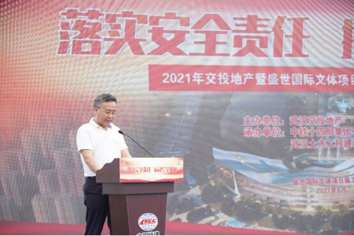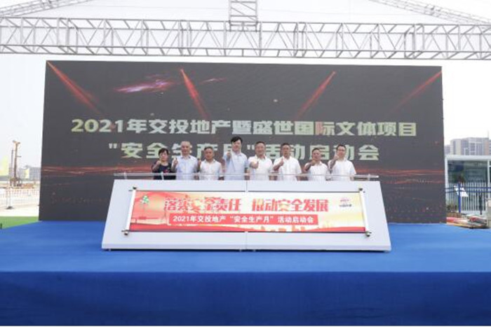 今年6月是全國第20個(gè)“安全生產(chǎn)月”,為深入貫徹落實(shí)省、市和武漢交投集團(tuán)關(guān)于安全生產(chǎn)工作的相關(guān)要求,全面落實(shí)企業(yè)安全生產(chǎn)主體責(zé)任,營造“人人講安全、人人要安全、人人會(huì)安全”的濃厚氛圍,6月2日上午,武漢交投集團(tuán)和縱盛地產(chǎn)公司在盛世國際文體項(xiàng)目施工現(xiàn)場(chǎng)舉辦了2021年“安全生產(chǎn)月”活動(dòng)啟動(dòng)會(huì)。黃陂區(qū)橫店街道人大主任羅學(xué)峰、交投集團(tuán)副總經(jīng)理文兵、交投集團(tuán)安全部部長汪幫平、交投集團(tuán)和縱盛地產(chǎn)公司總經(jīng)理尹水章等領(lǐng)導(dǎo)蒞臨指導(dǎo),地產(chǎn)公司各部門負(fù)責(zé)人、各項(xiàng)目辦負(fù)責(zé)人、各項(xiàng)目施工、監(jiān)理單位代表參加了啟動(dòng)會(huì)。