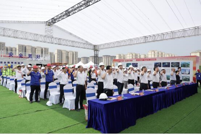 活動(dòng)中,施工、監(jiān)理單位代表作表態(tài)發(fā)言,全體參會(huì)人員進(jìn)行了集體安全宣誓,集中觀看了應(yīng)急演練視頻,并在盛世國際文體項(xiàng)目實(shí)體安全體驗(yàn)區(qū)進(jìn)行了現(xiàn)場(chǎng)觀摩。